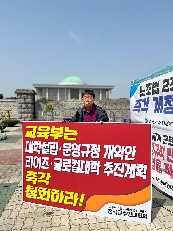 제목 : (전국교수연대회의)공공적 고등교육정책 요구하는 피켓시위 공동회장단 동참 페이지 정보 작성자 국교련 작성일23-05-11 16:52 조회68회 이전글 다음글 목록 본문 23년도 4월에는 전국교수연대회의와 공동으로 '공공적 고등교육정책과 대학균형발전을 촉구하는 전국교수연구자 1만명 서명운동'을 펼쳤으며, 국회앞에서 피켓시위도 진행하였습니다. 이전글 다음글 목록