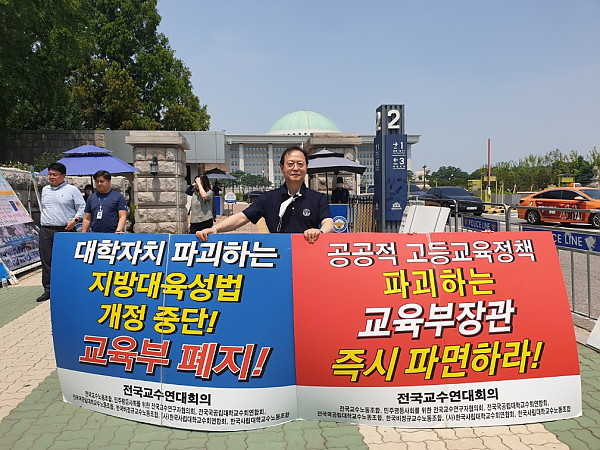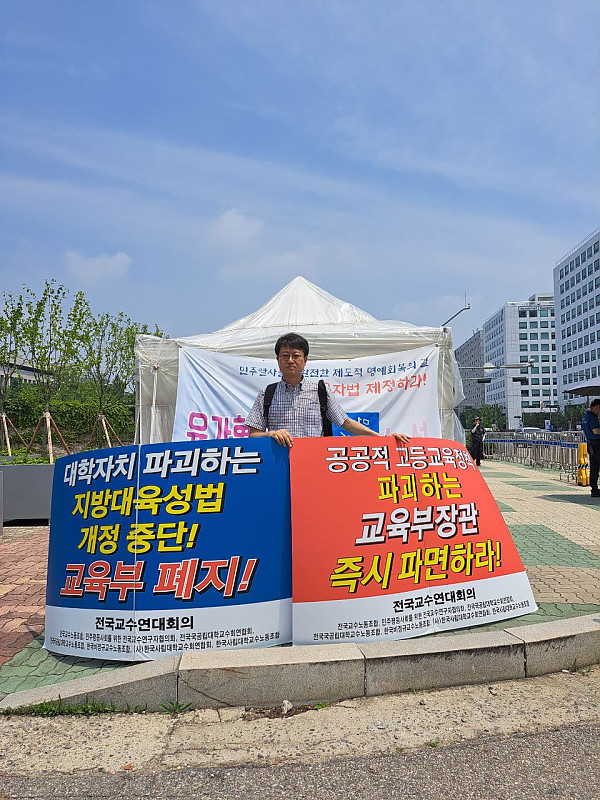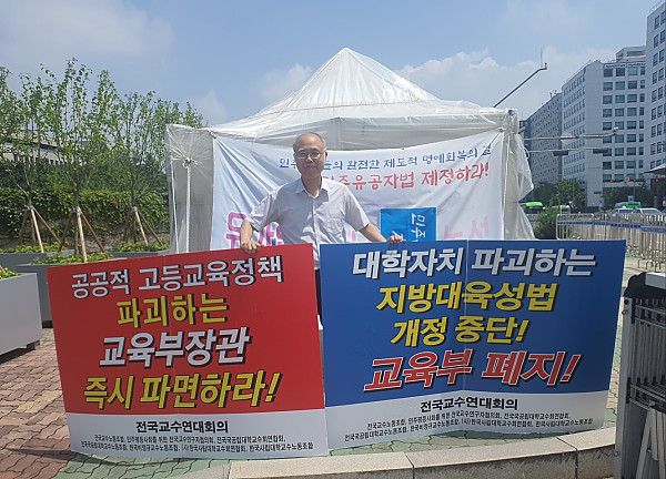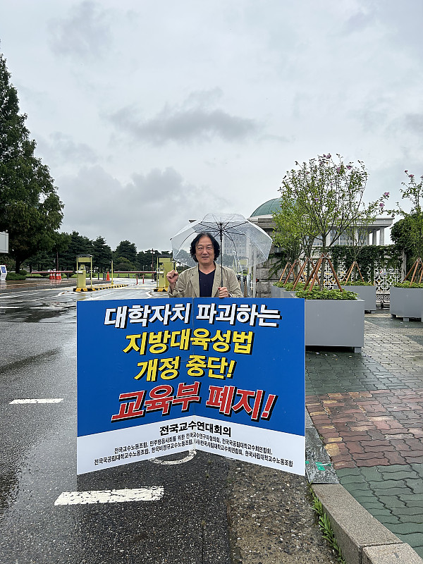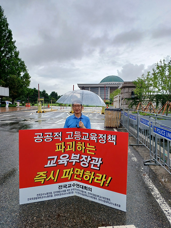 제목 : 국회앞에서 1인릴레이시위 진행-지방대육성법개정중단 및 교육부폐지