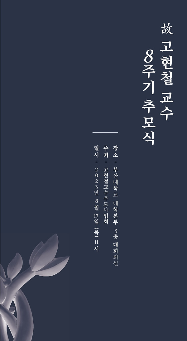 제목 : 故 고현철 교수 8주기 추모식 행사 페이지 정보 작성자 국교련 작성일23-08-24 15:41 조회58회 이전글 다음글 목록 본문 장소_ 부산대학교 대학본부 3층 대회의실 주최_ 고현철교수추모사업회 일시_ 2023년 8월 17일(목) 11시 이전글 다음글 목록