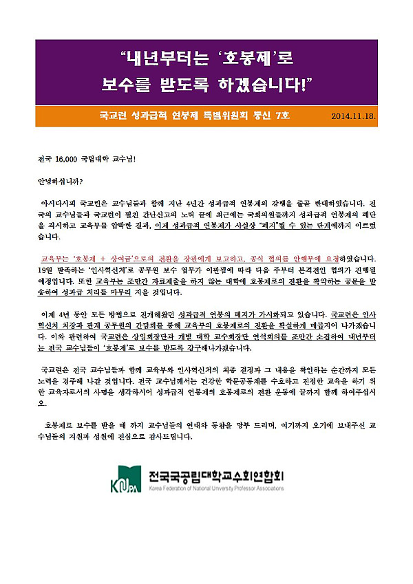 제목 : [통신문7호]성과급적연봉제특별위원회