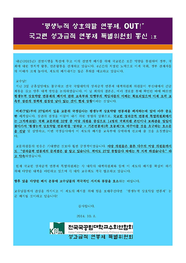 제목 : [통신문1호]성과급적연봉제 특별위원회 통신문