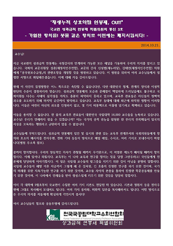 제목 : [통신문 3호]성과급적 연봉제 특별위원회